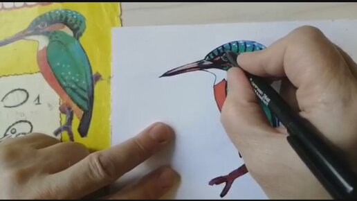 Зимородок красками. Продолжение урока. Художник Владимир Забелин