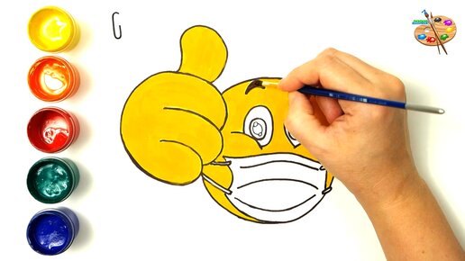 Как нарисовать СМАЙЛ. Рисуем СМАЙЛИК в МАСКЕ для детей / Детские рисунки / РАСКРАСКИ МАЛЫШАМ