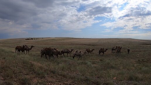 Дикие верблюды по казахстанской трассе