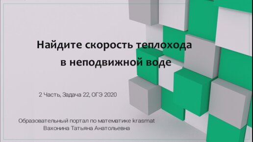 Найдите скорость теплохода в неподвижной воде, задача 22, ОГЭ 2020