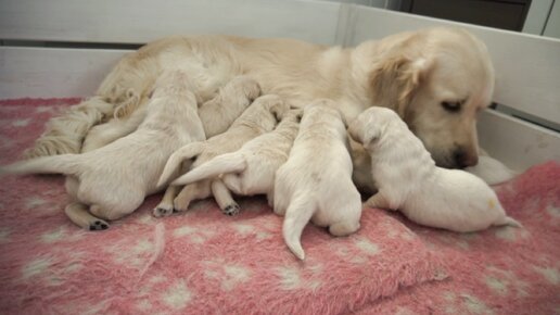 Щенки голден ретривера открыли глазки и начинают ходить!