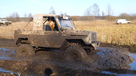 Подготовленные внедорожники НИВА и УАЗ соревнуются на бездорожье