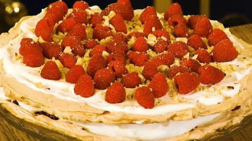 Воздушный торт с фундуком и малиной