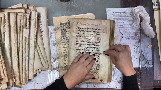 Процесс реставрации Евангелие 7114 лето (1606 год) от сотворения мира