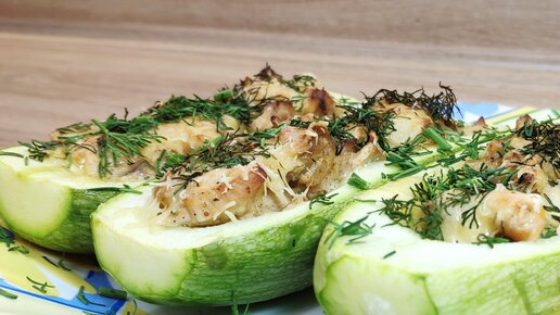 ФАРШИРОВАННЫЕ КАБАЧКИ «лодочки» с курицей и грибами, запеченные В ДУХОВКЕ