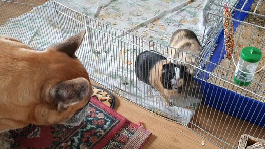 Морские свинки общаются с собакой