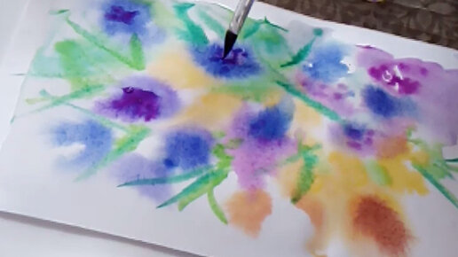 Рисуем акварелью по-мокрому. Весна. Цветы. Птицы.