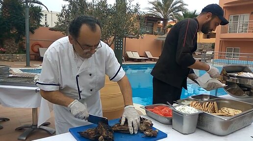Так делают знаменитый греческий гирос в критском отеле High Beach