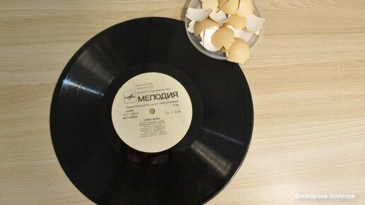 Красивая идея из виниловой пластинки и яичной скорлупы. Поделки своими руками.