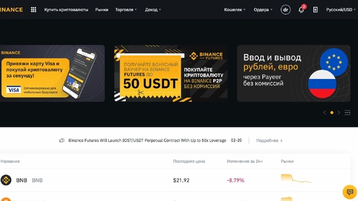 Binance - вывод средств без комиссии (новые условия) на AdvCash, Payeer и банковские карты