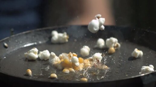 Взрыв попкорна на сковородке. Эпичная замедленная съемка в 4К
