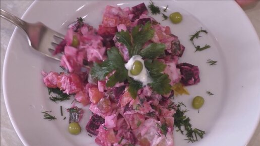 У всех винегрет с овощами, а у меня с мясом, очень вкусно