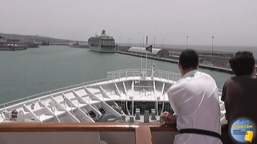 Прибытие в порт Чивитавеккья с палубы круизного лайнера, шум ветра и мужчины-проститутки