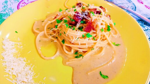 Паста КАРБОНАРА! С Сырокопченой Грудинкой в Сливочном Соусе БЕЗ СЛИВОК!!! Pasta Аlla Сarbonara!