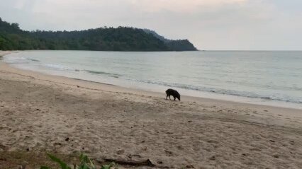 Кабан на морском пляже.