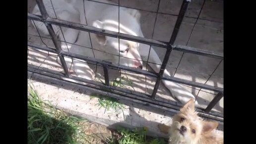 Собаки пород Алабай и Чихуахуа кушают травку на даче
