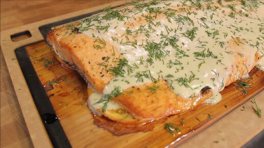 Готовим рыбу на кедровой доске со сливочно-винным соусом
