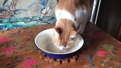 Как Рыська , наша хозяюшка , тарелку после папочки моет .