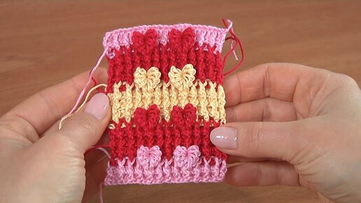 Вязание узора крючком с навязками в виде сердечек - Урок по узорам №13