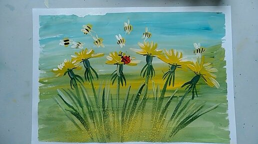 Рисуем одуванчики. Урок по рисованию поэтапно. Картина за 10 минут.