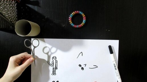Рисуем при помощи тени. Воздушные шарики получаются от ножниц. А если нужно нарисовать животное, обведите его тень :)