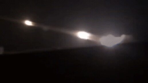 Залп батареи РСЗО ночью