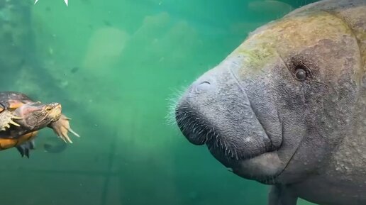 Не разлей вода: ламантин жить не может без своей черепашки