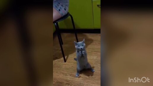 Кошка-кролик стоит на задних лапах и вкусно ест!