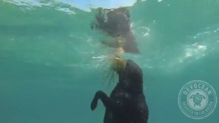 Собака-рыбака. Раки в недоумении... Лабрадор получше некоторых рыбаков...