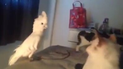 Попугай передразнивает кошек