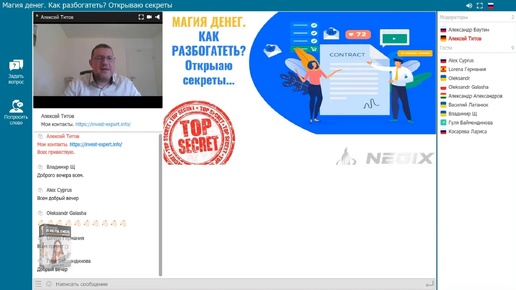 Магия денег. Как разбогатеть? Открываю секреты. Вебинар Negix от 30.04.2020 Главное.