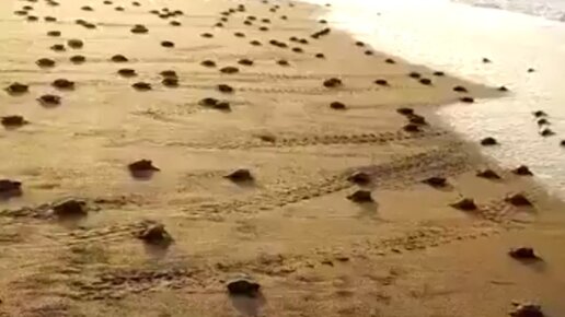 Множество вылупившихся черепашат сняли на видео в индийском штате Одиша