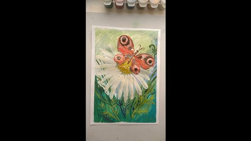 Красивая бабочка на цветке украсит любой интерьер! Рисуем легко и просто!