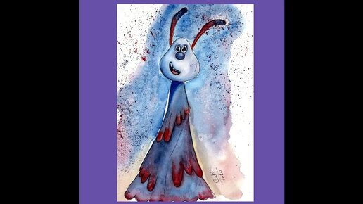 Пошагово показываю как рисовать инопланетянку из мультфильма Барашек Шон Акварель по мокрому и по сухому плюс соль