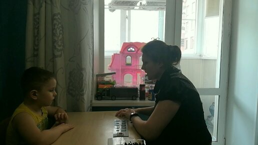 Обучение Матвея сидеть за столом.