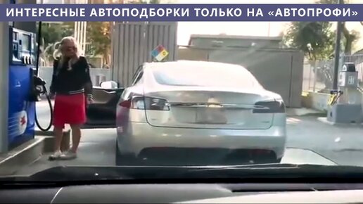 Блондинка и Тесла на заправке. Девушки и авто #5