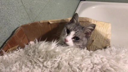 Кот Сенька любит спать не на подстилке , а под подстилкой . Смотрим .