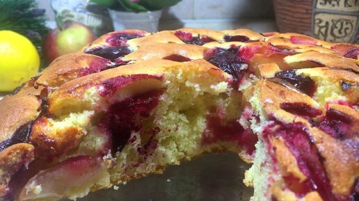 Вкусный и Пышный пирог со сливами и яблоками. Просто и доступно. Рецепт пирога.