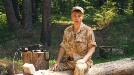 Лес, палатка, лето, FT-897, антенна из проволоки. Радиолюбитель в лесу.
