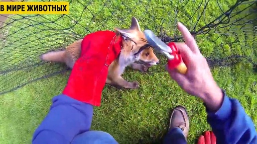 Спас маленького лисенка котрый запутался в сетке. Снимаю процесс на видео