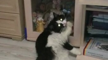 Кошка испугалась своей лапки