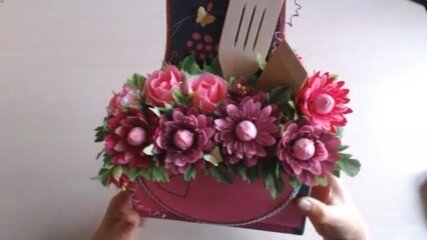 "Букет из конфет- Фартук хозяюшки". Обзор готовой работы