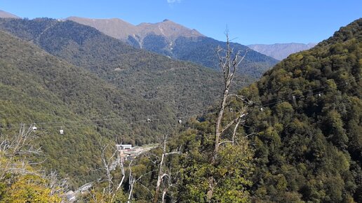 Канатная дорога над огромным ущельем в Сочи