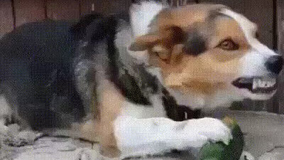 Злой веган. Даже не думал, что собаки едят огурцы.