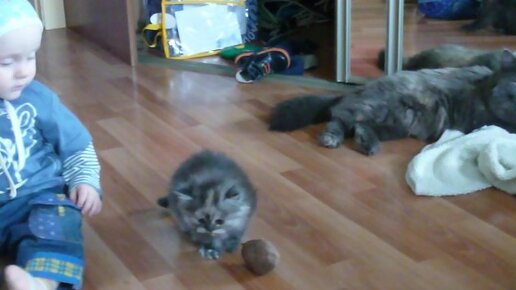 Ребёнок и котёнок помогают бабушке, хоть она об этом и не просила:)