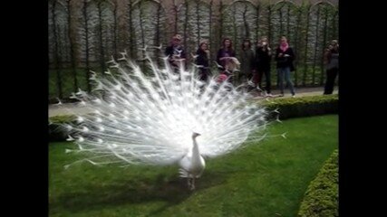 Белый павлин в саду Чехии. Посмотрите.