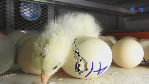 Рождение цыпленка это эффектно, второй цыпленок пытался помочь