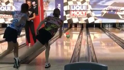 Не можешь попасть в кегли? Подруга всегда поможет:)