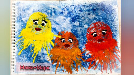 Мы медузы, мы медузы🐙... Рисуем пальчиками, кисточками, мыльными пузырями🦑