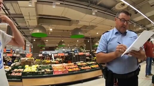 В немецком супермаркете русский мужчина по имени Саня устроил драку с представителем полиции.